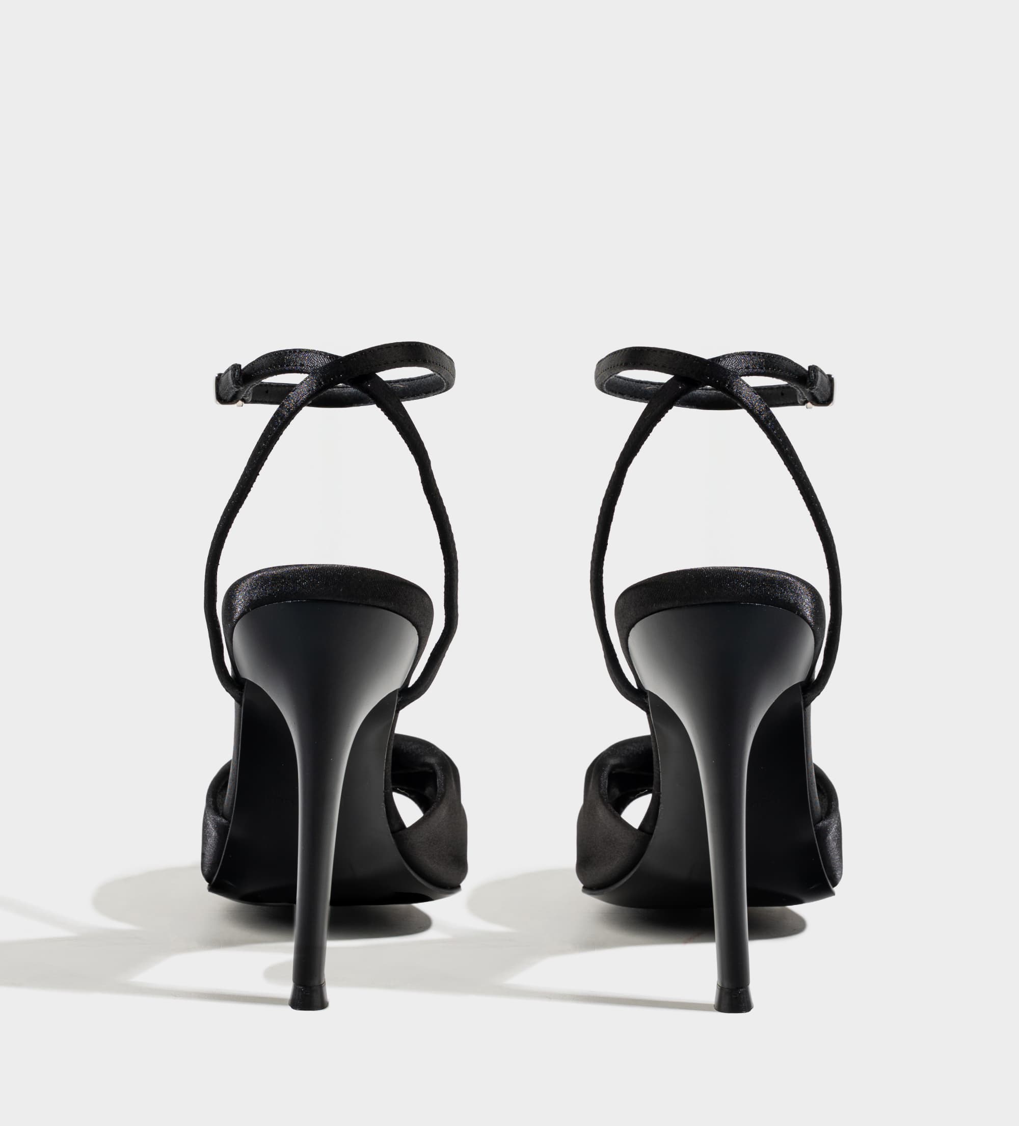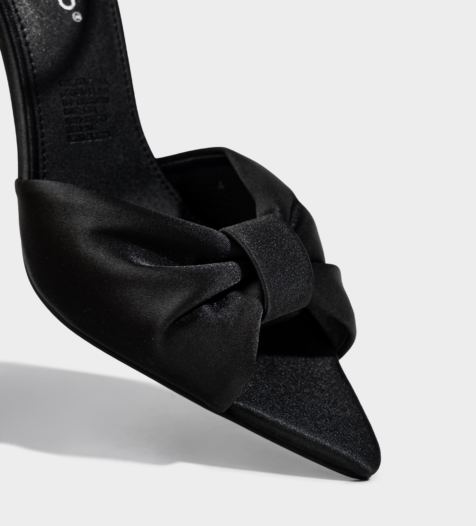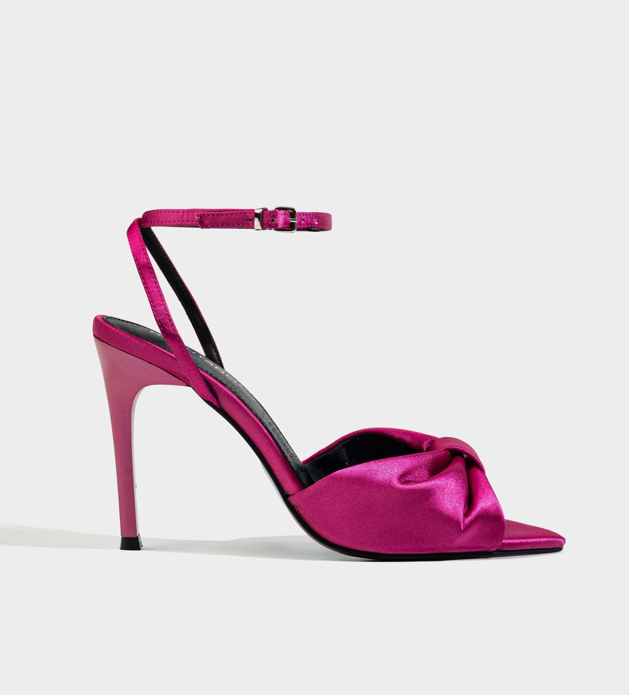 SANDALIA TACÓN MOÑO TEXTIL SATINADO NEGRO