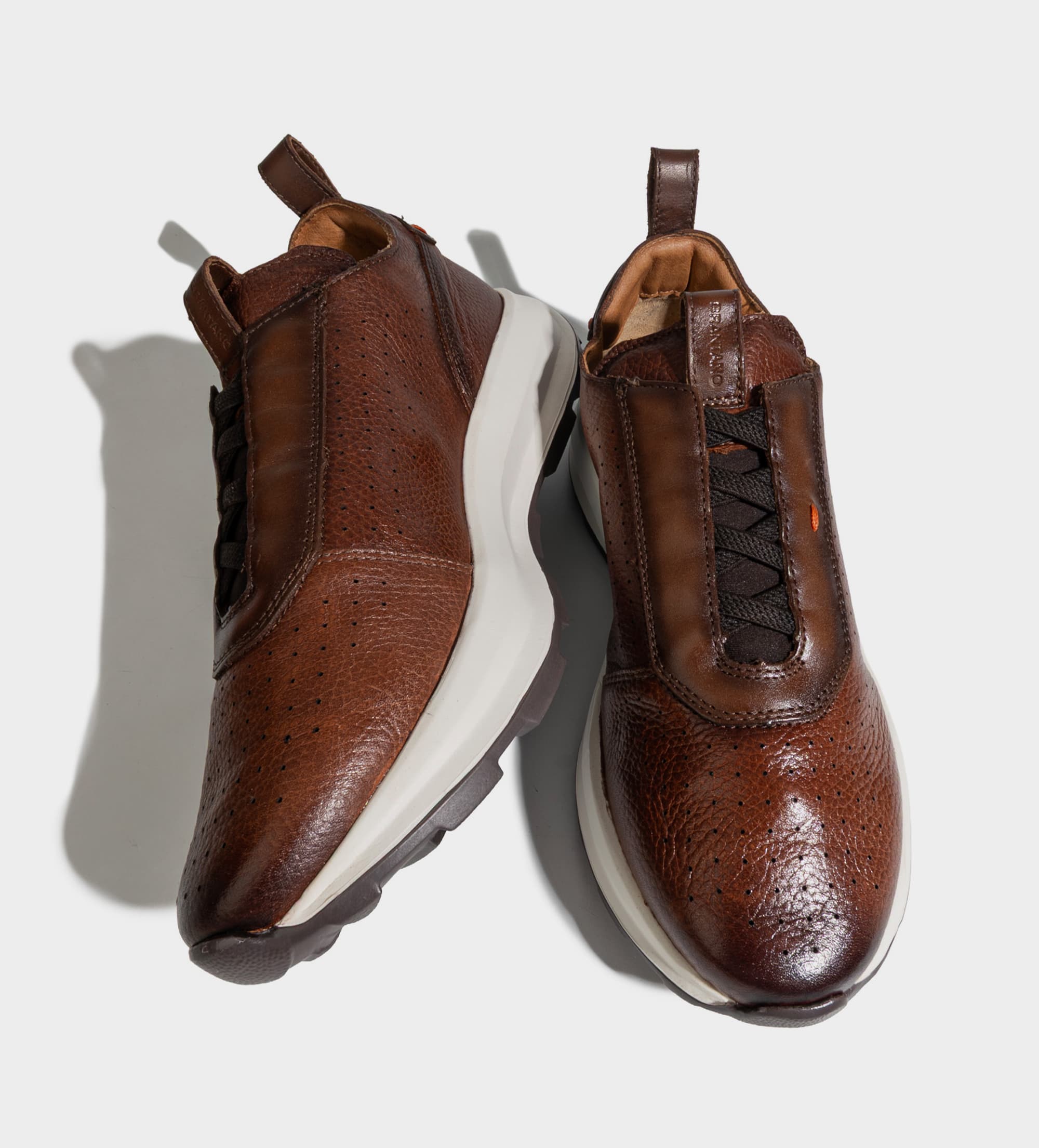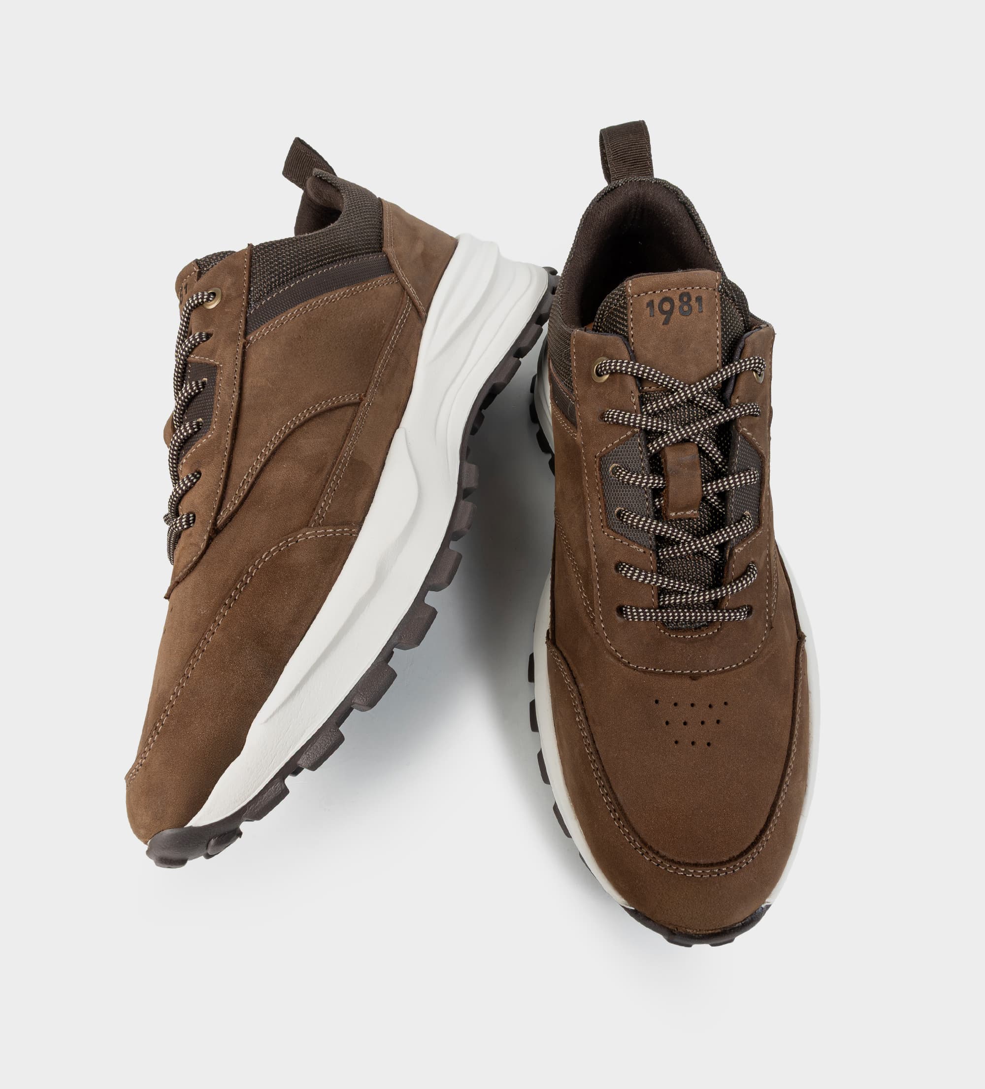 SNEAKER SUELA ULTRA LIGERA AGUJETAS ELÁSTICAS PIEL CAFÉ