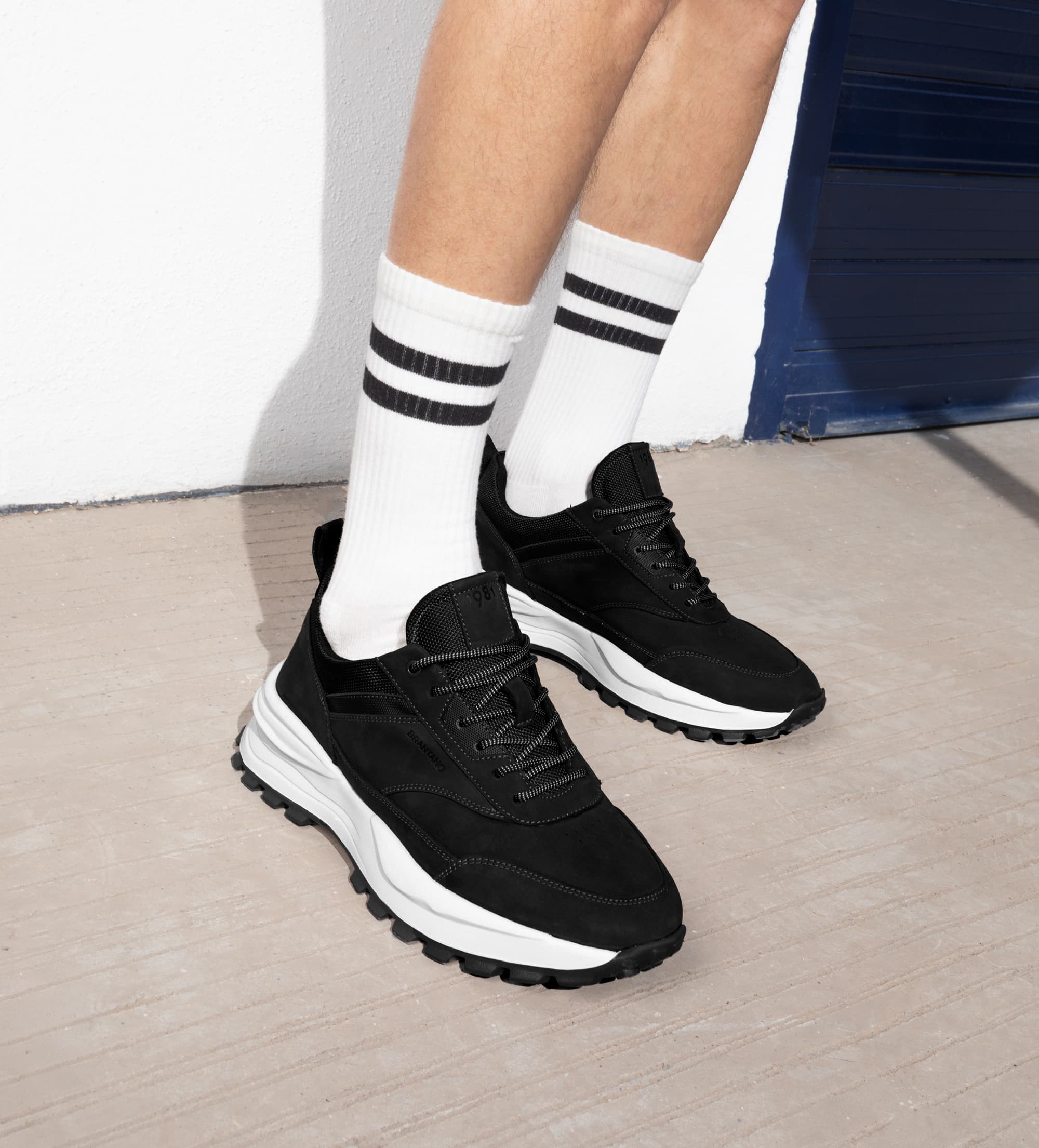 SNEAKER CASUAL GAMUZA PIEL AZUL FRANJAS LATERALES
