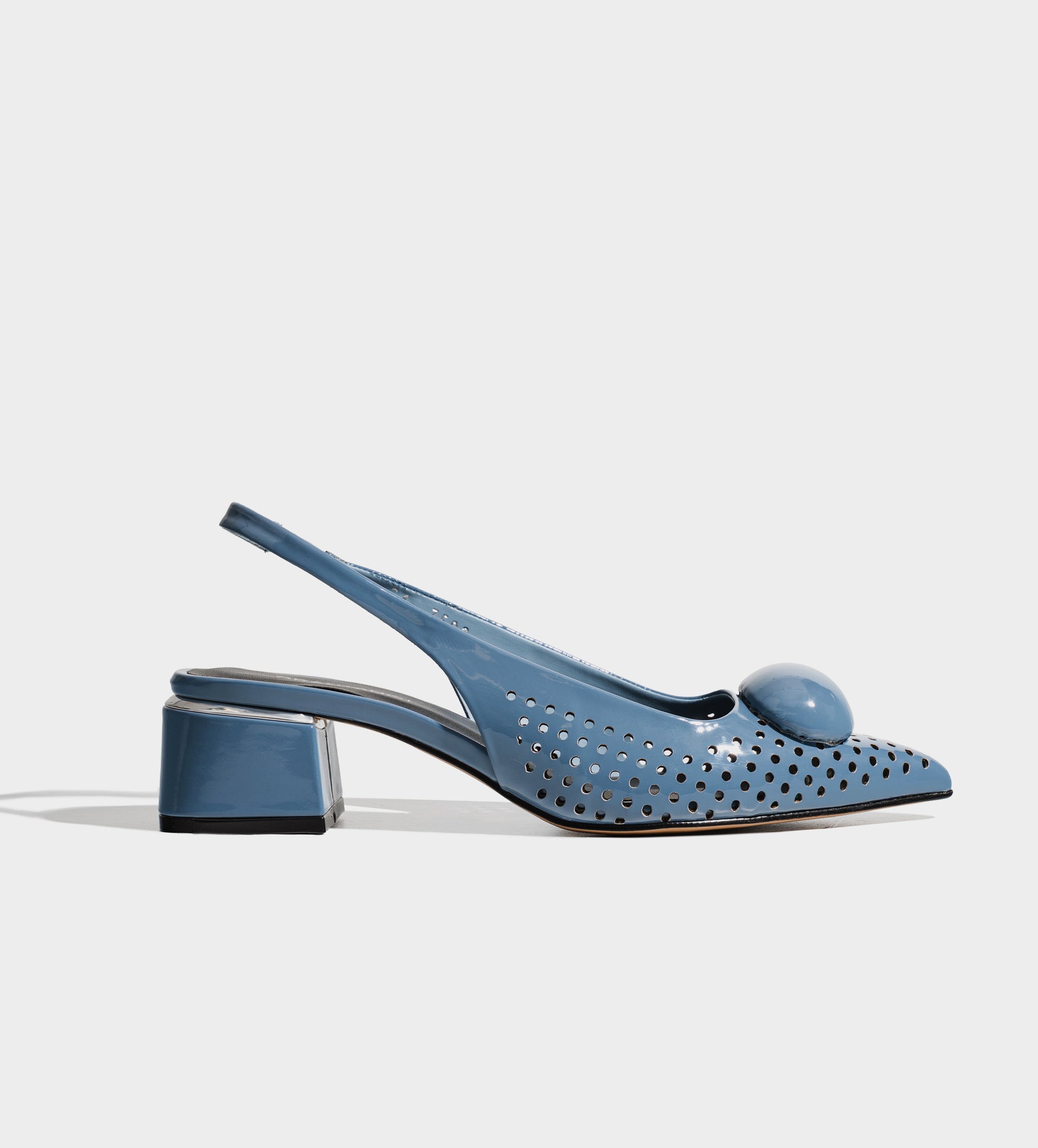 ZAPATILLA DESTALONADA TACÓN KITTEN CHAROL AZUL