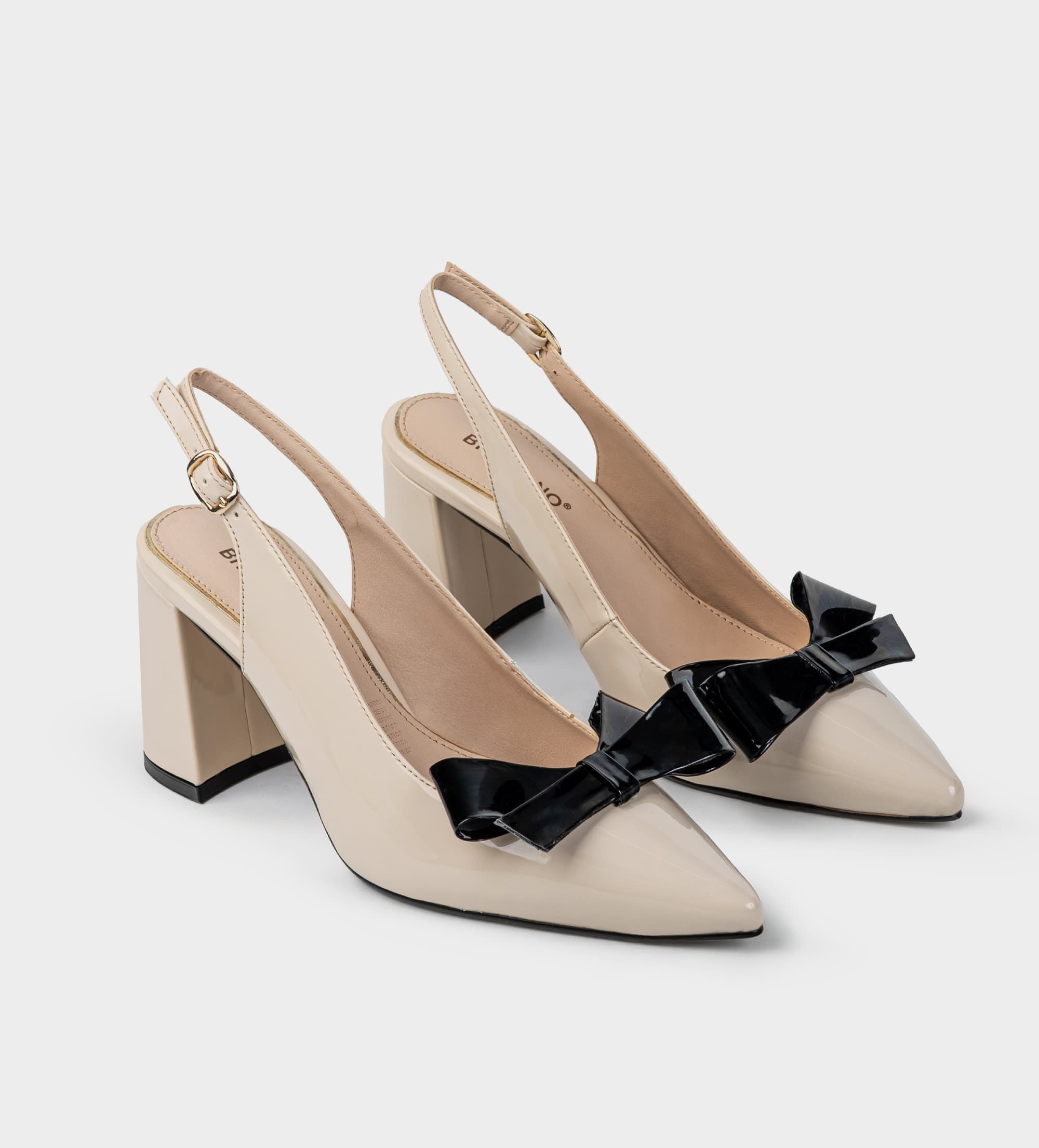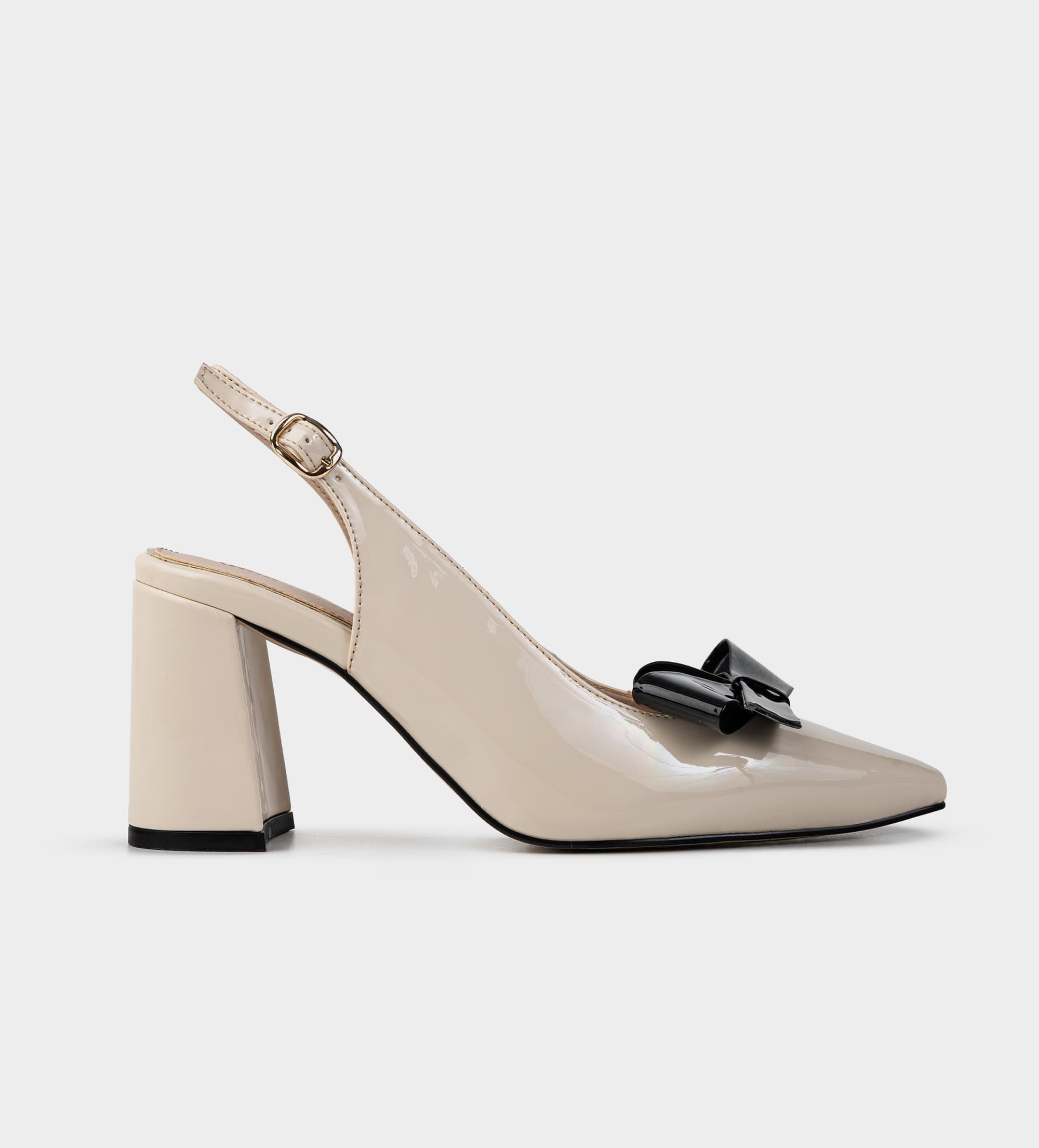 ZAPATILLA DESTALONADA TACÓN KITTEN CHAROL HUESO