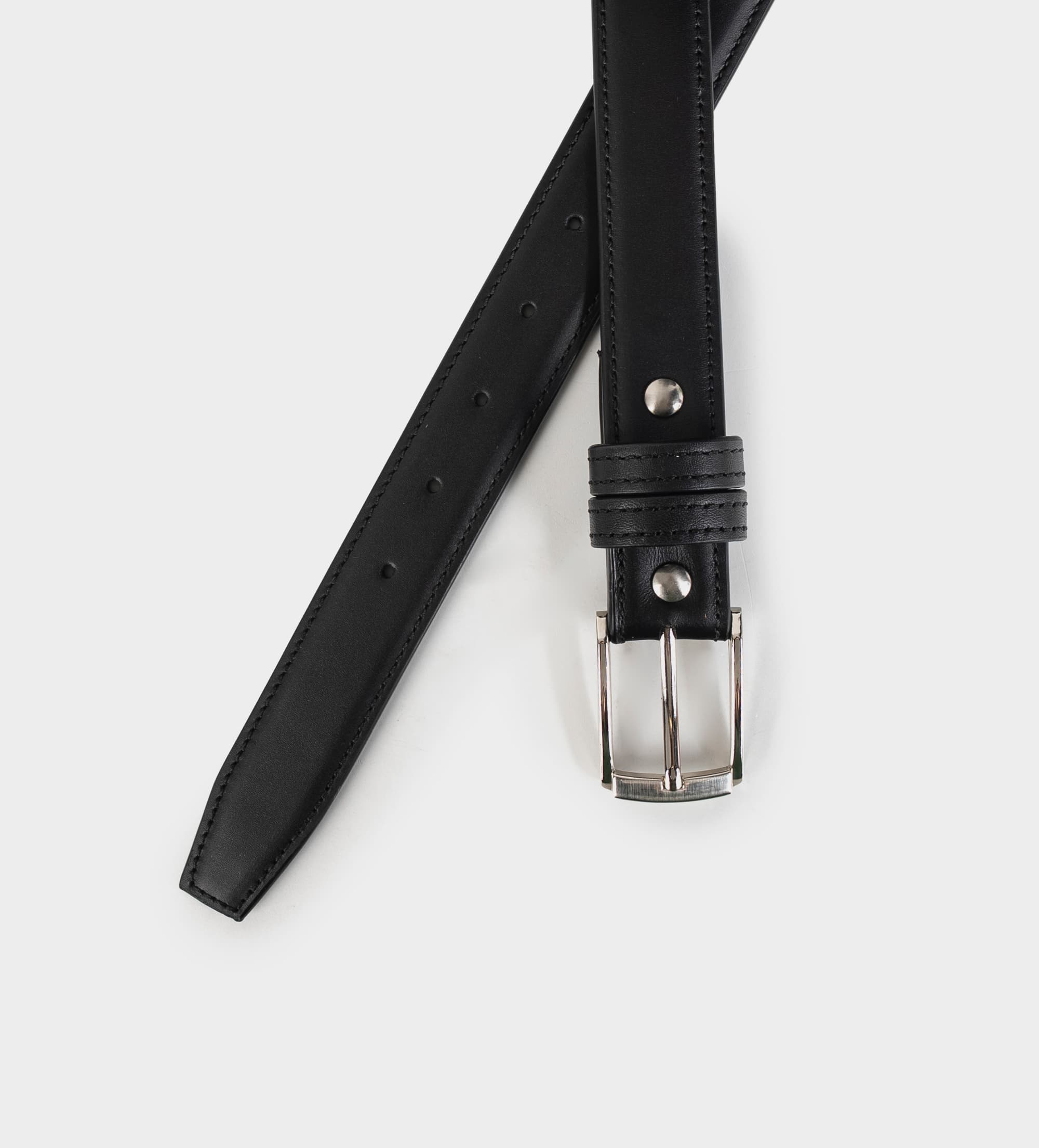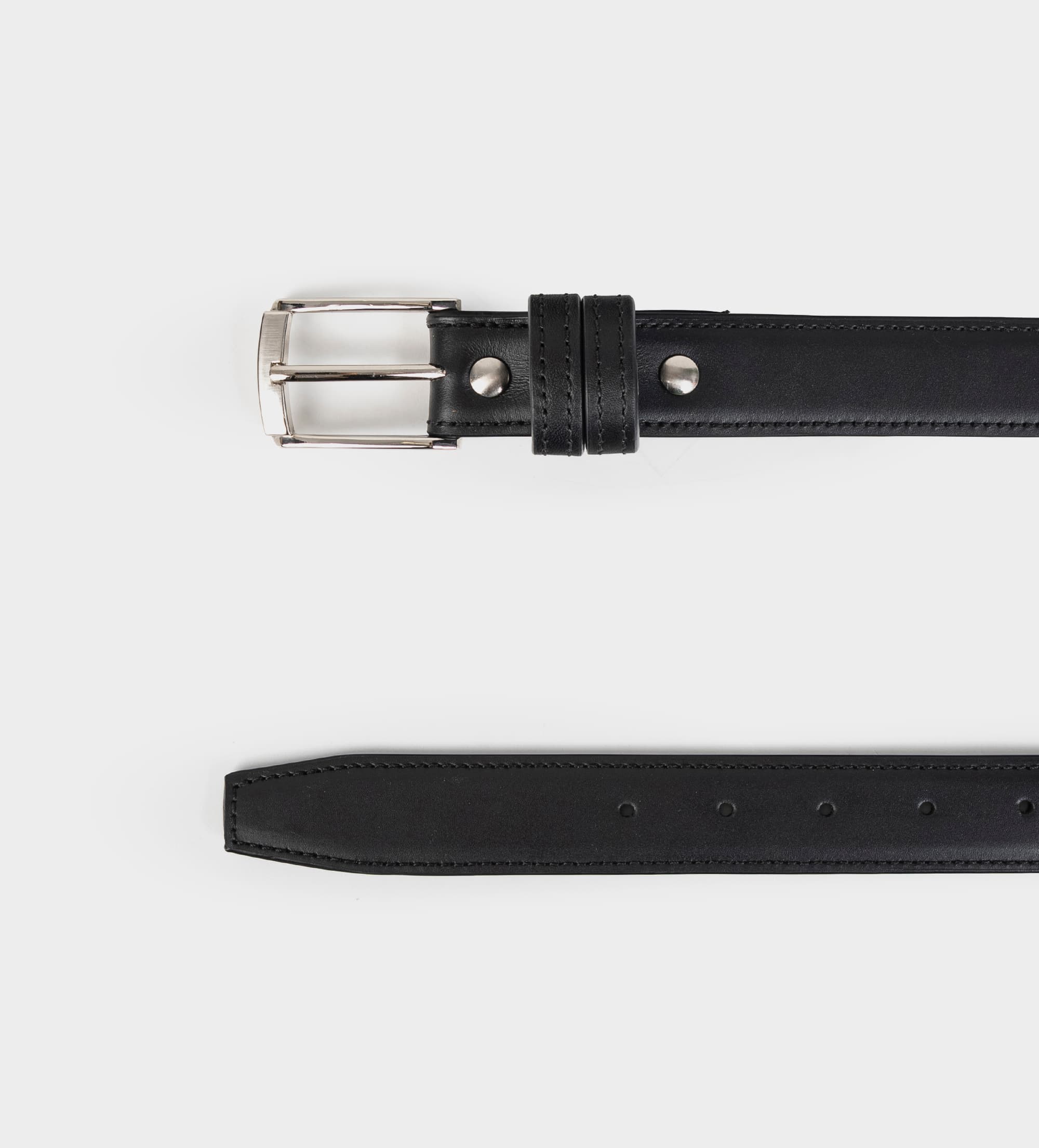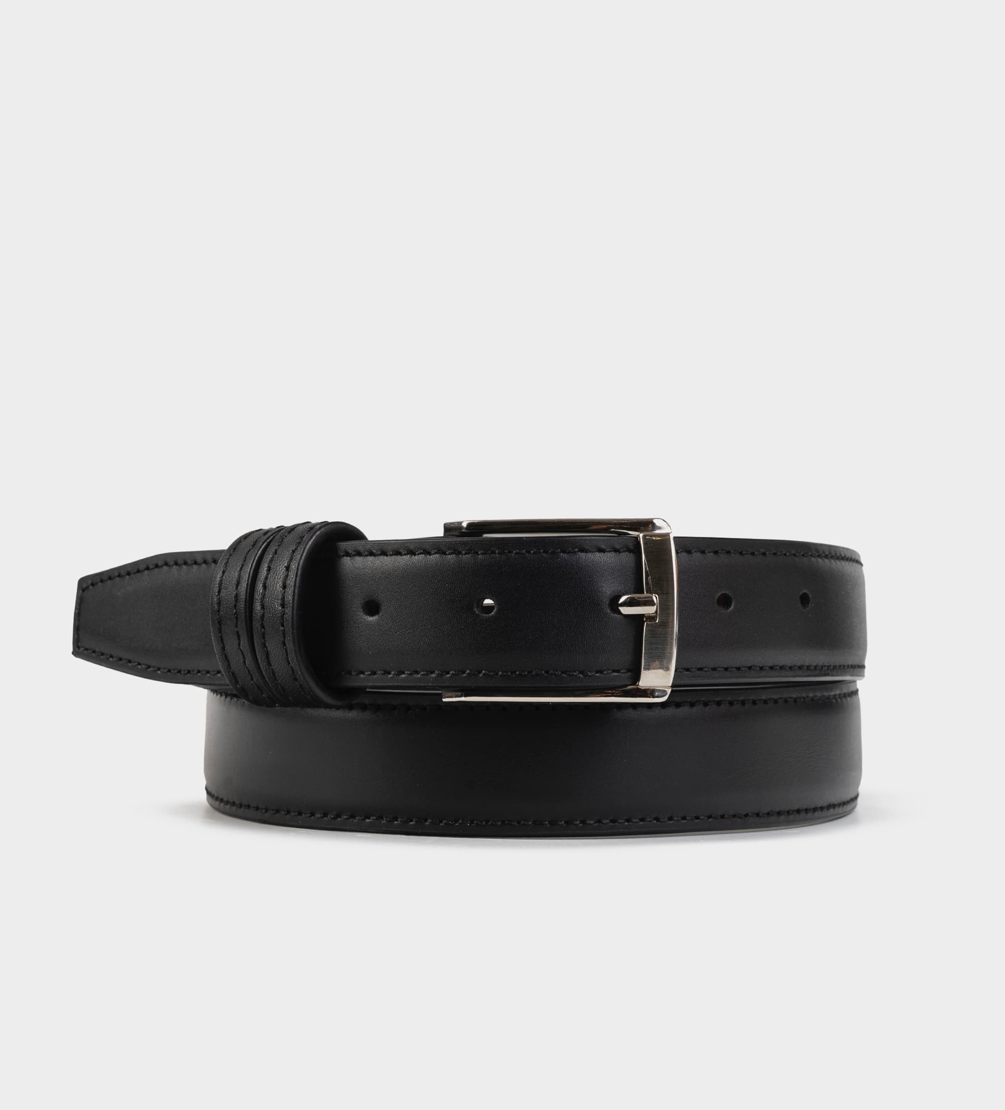 CINTURÓN PIEL NEGRO HEBILLA PLATEADA