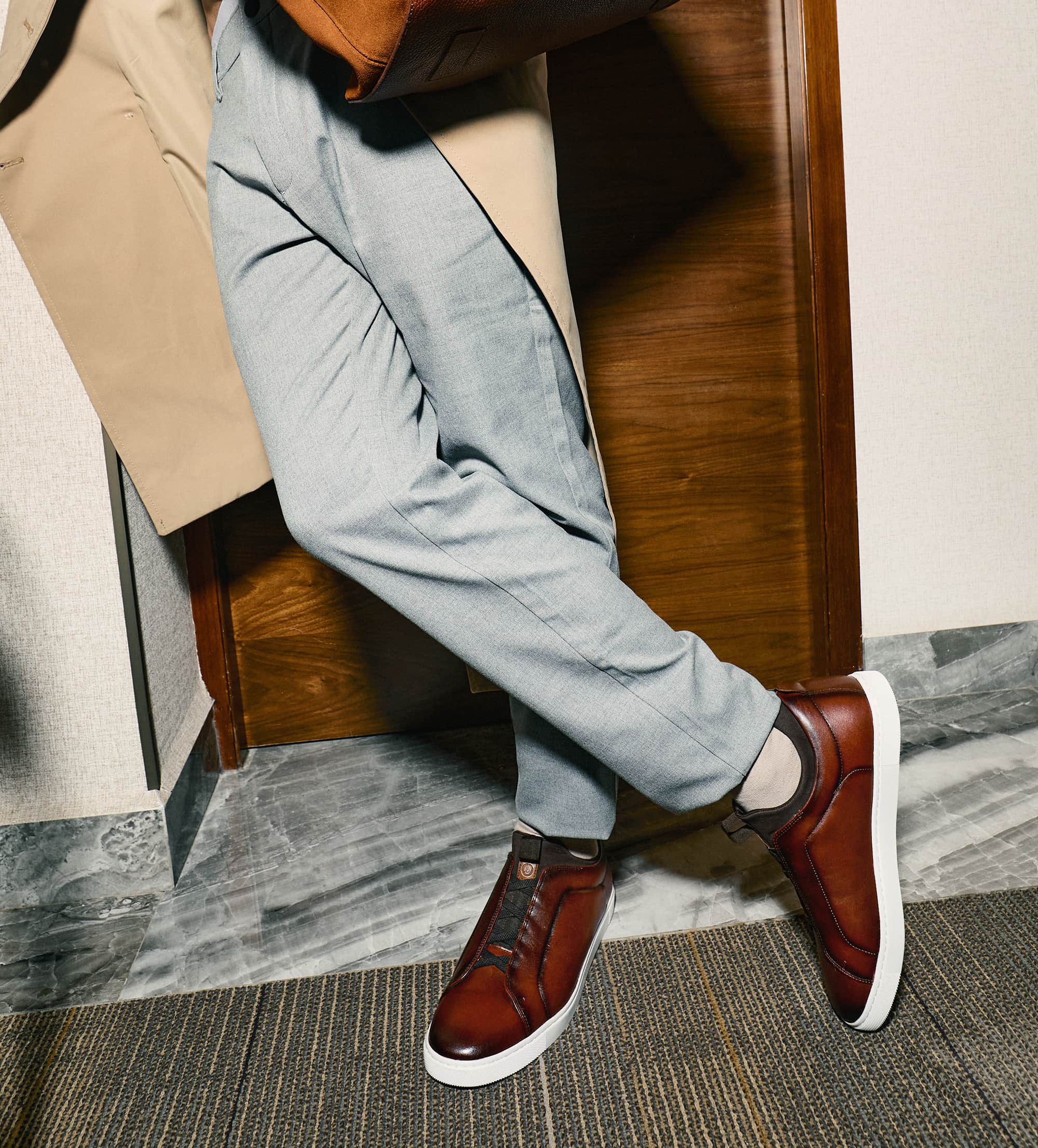 SNEAKER CASUAL AGUJETA ELÁSTICA PIEL CAFÉ
