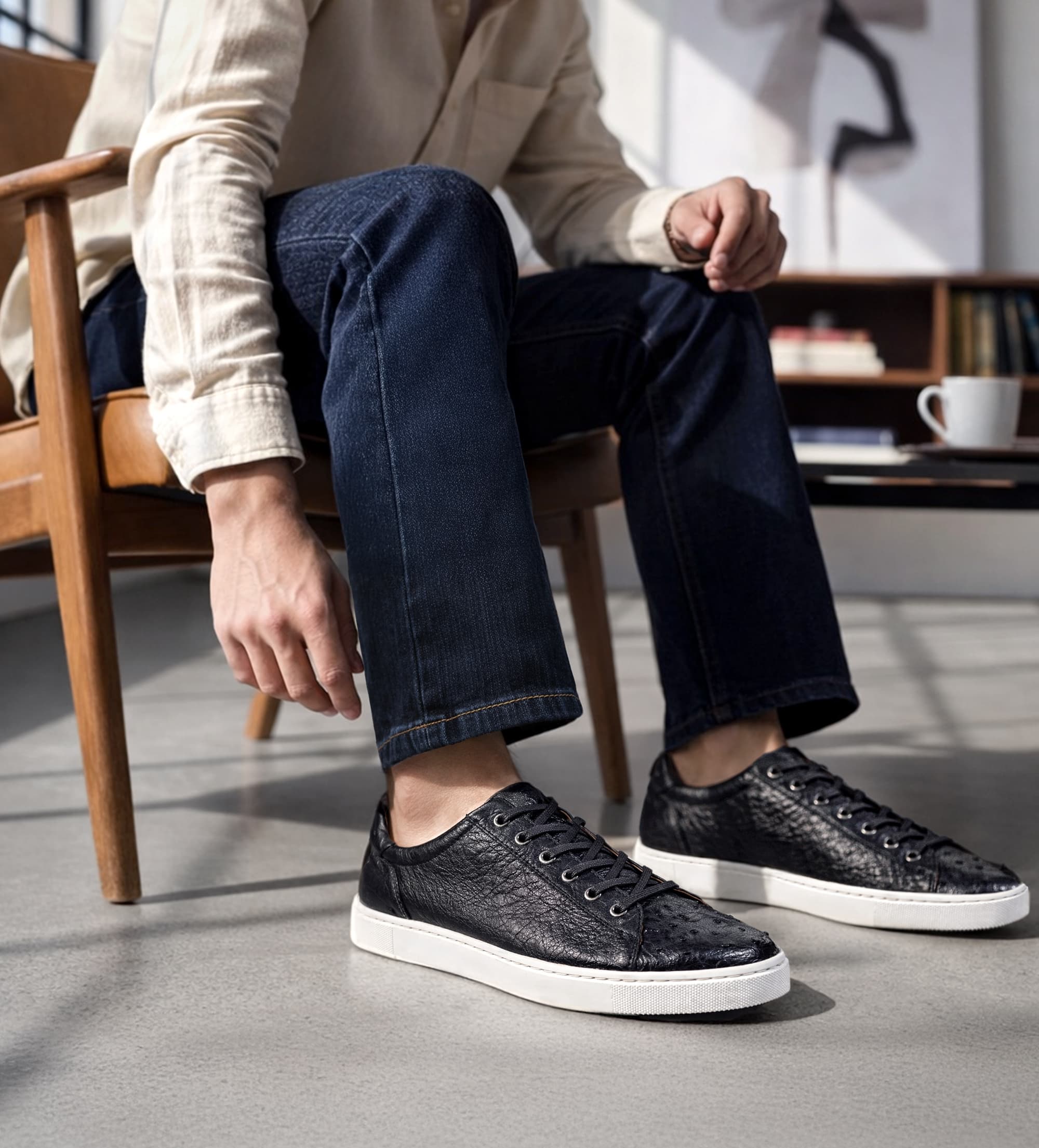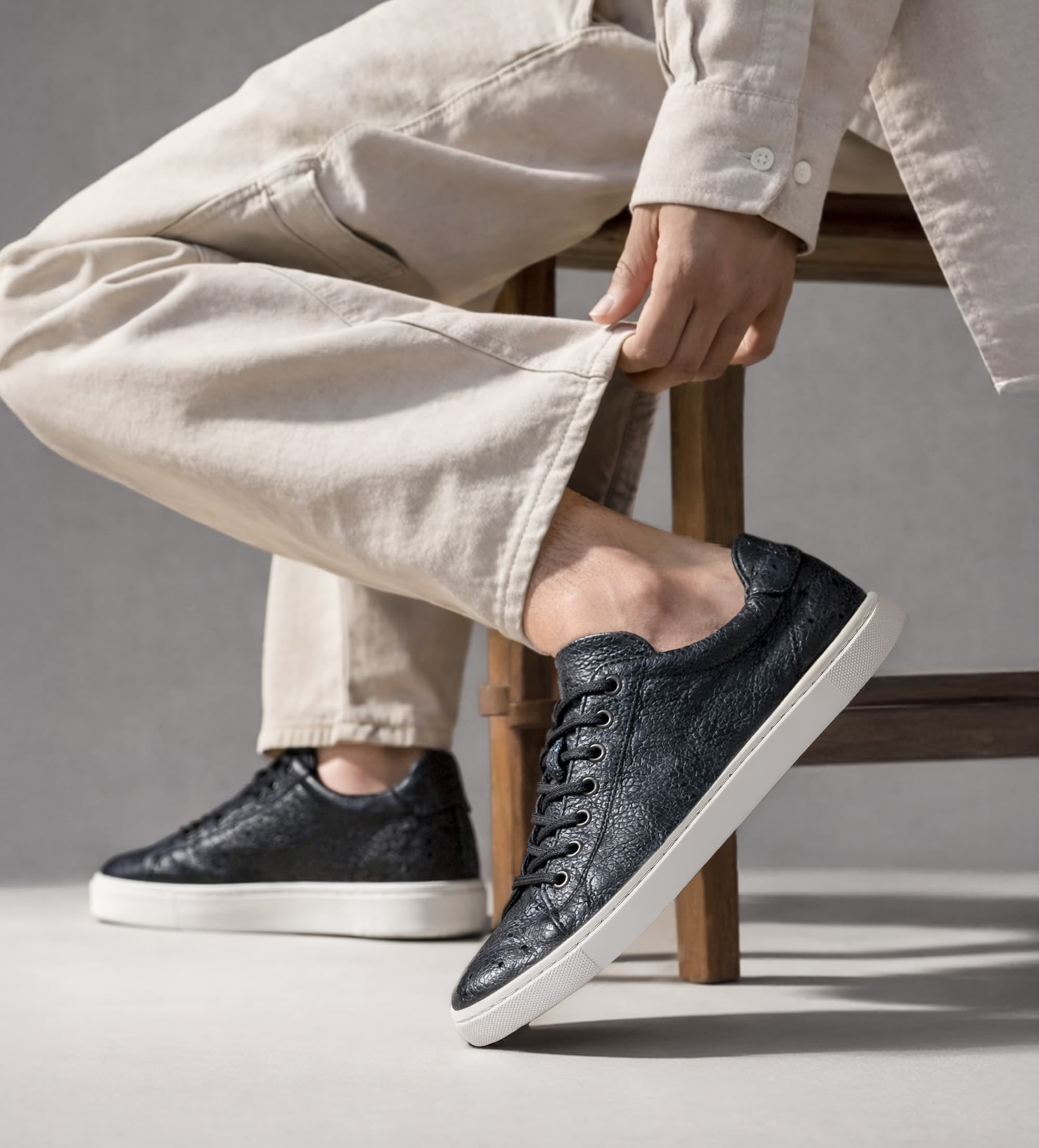 SNEAKER PREMIUM PIEL AVESTRUZ NEGRO ACERO