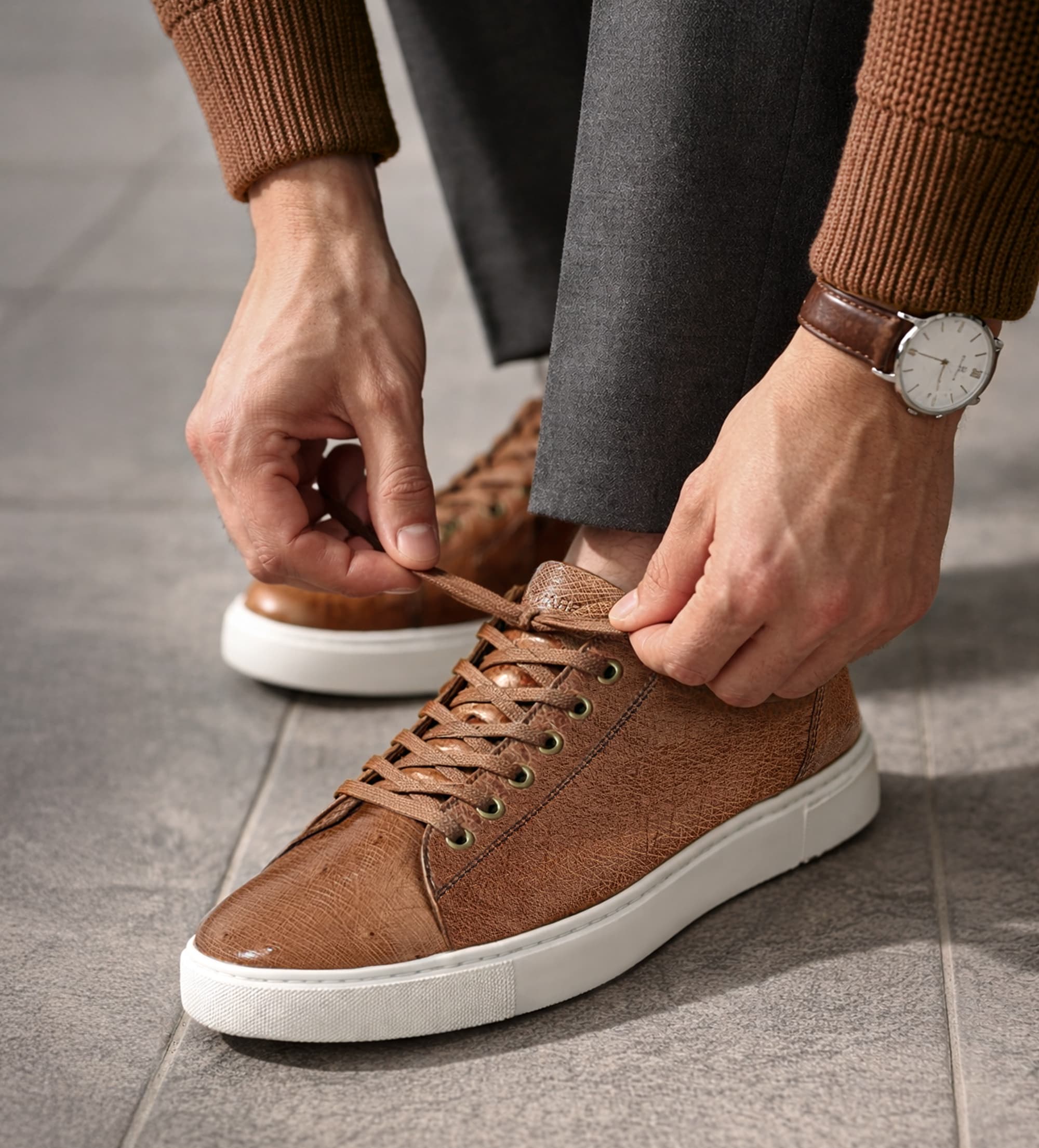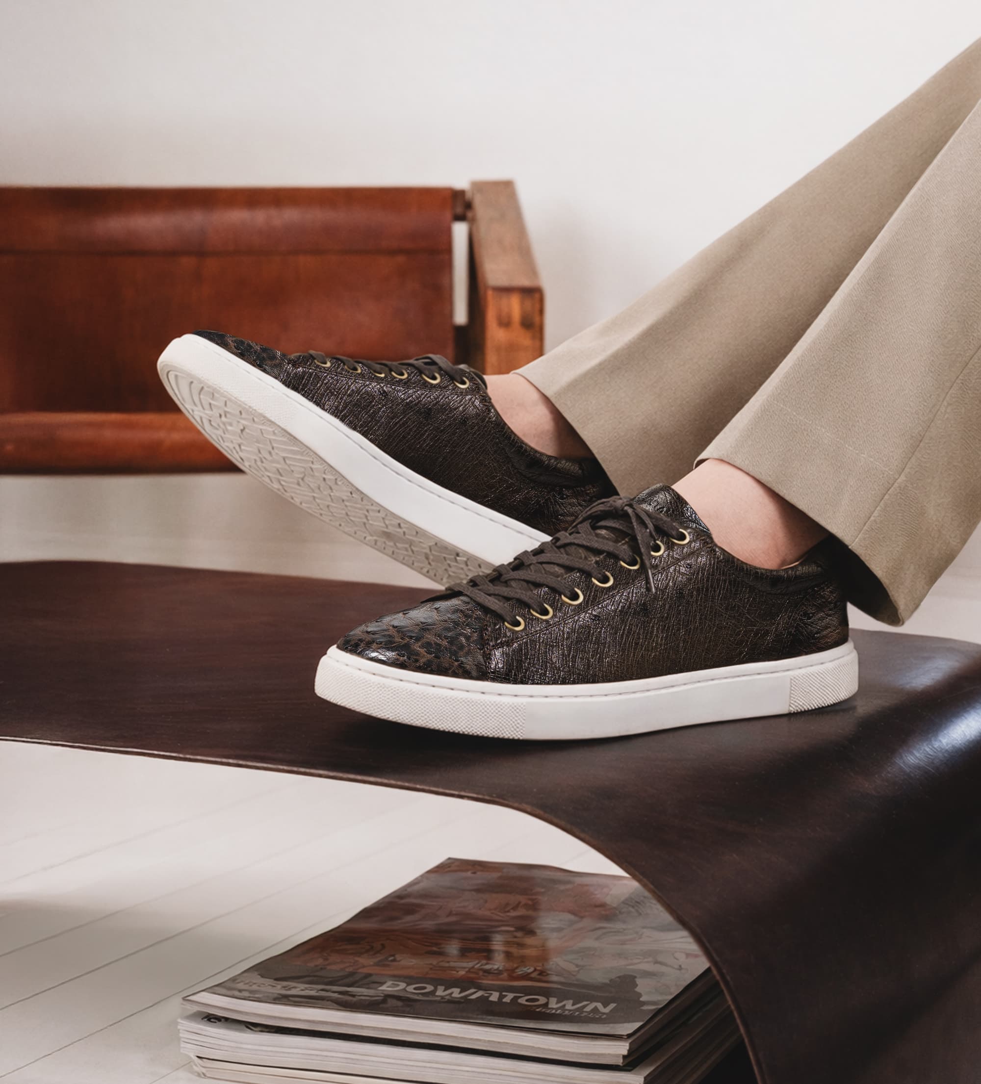 SNEAKER PREMIUM PIEL AVESTRUZ CAFÉ