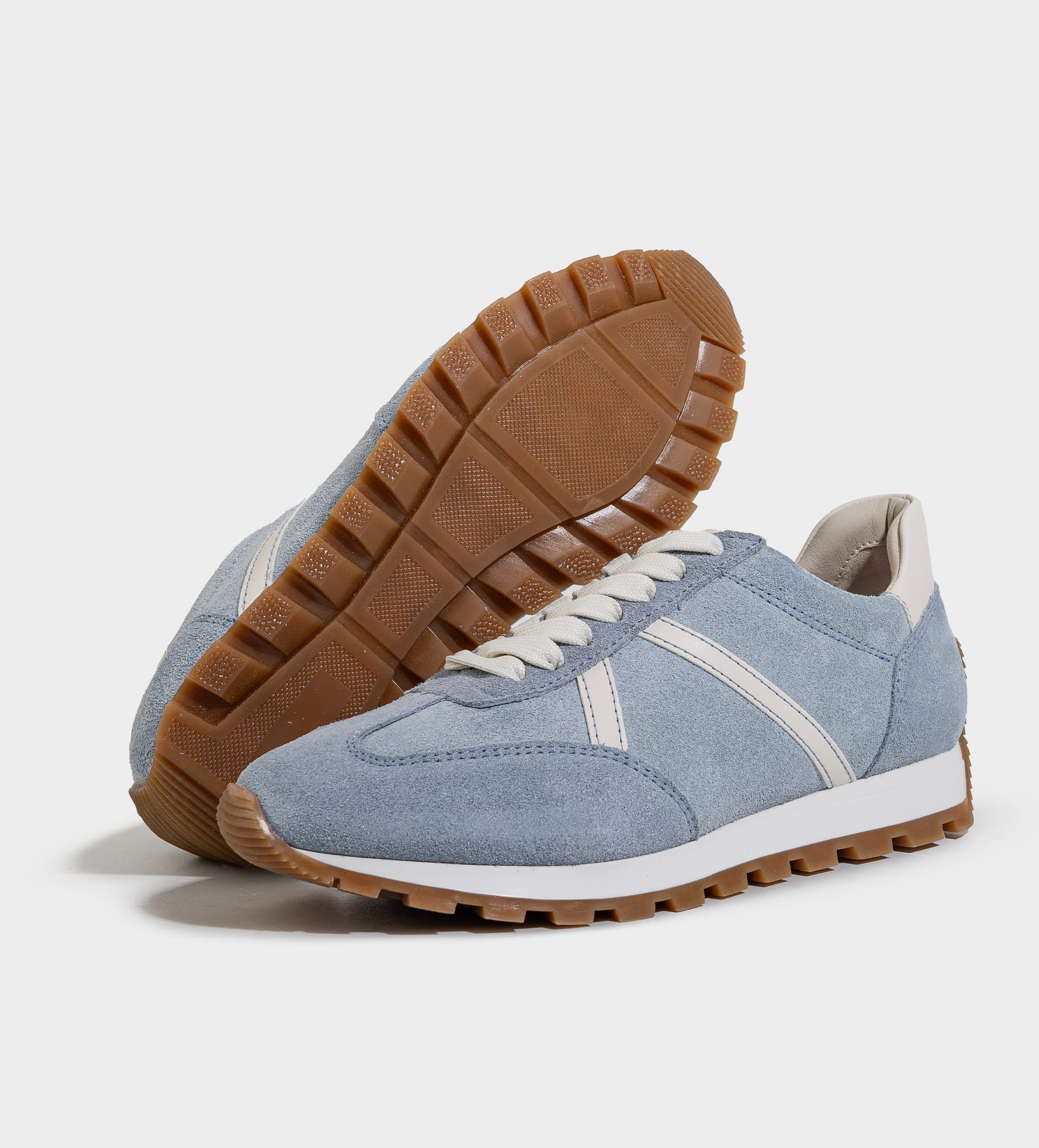 SNEAKER CASUAL GAMUZA PIEL AZUL FRANJAS LATERALES