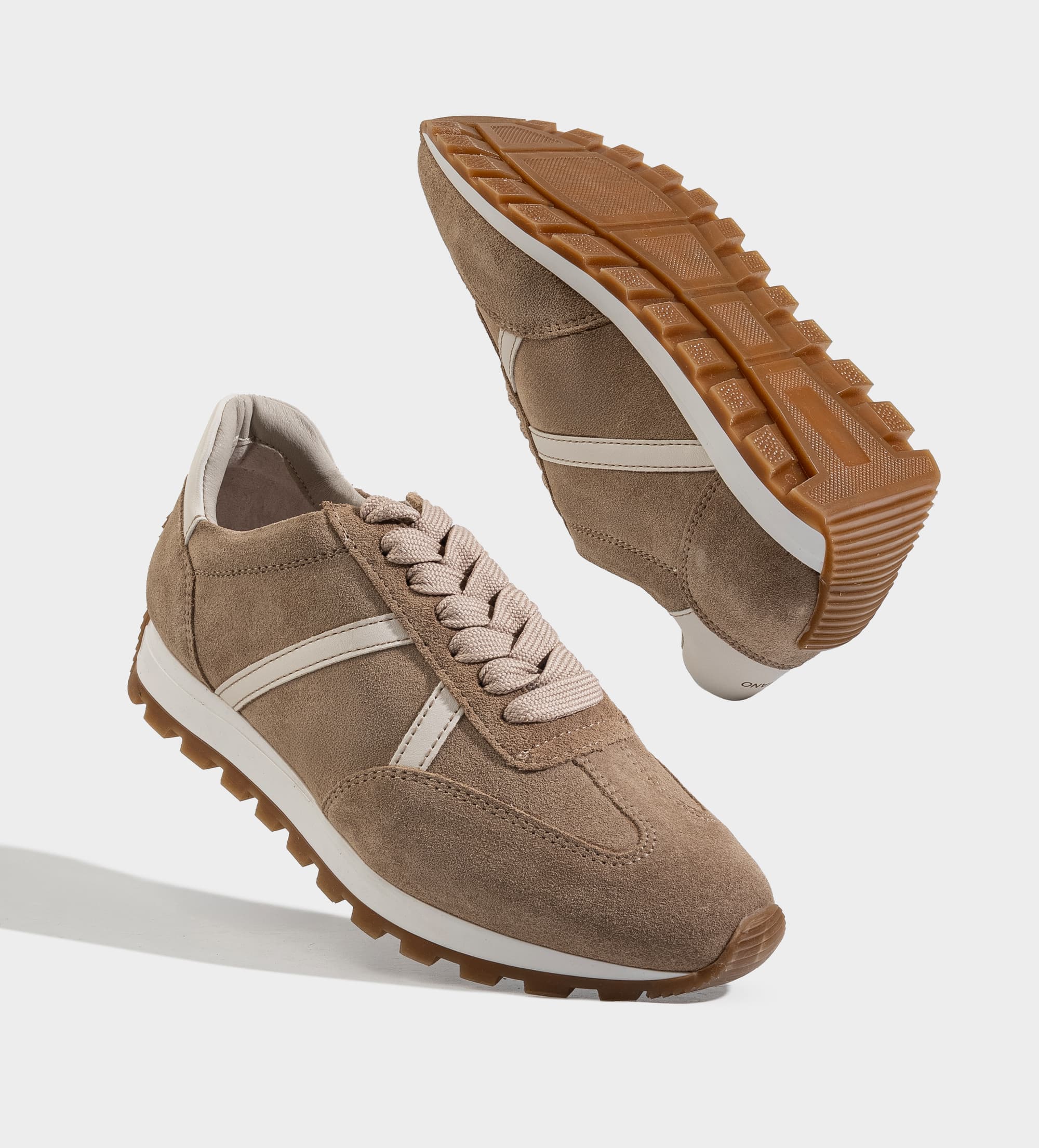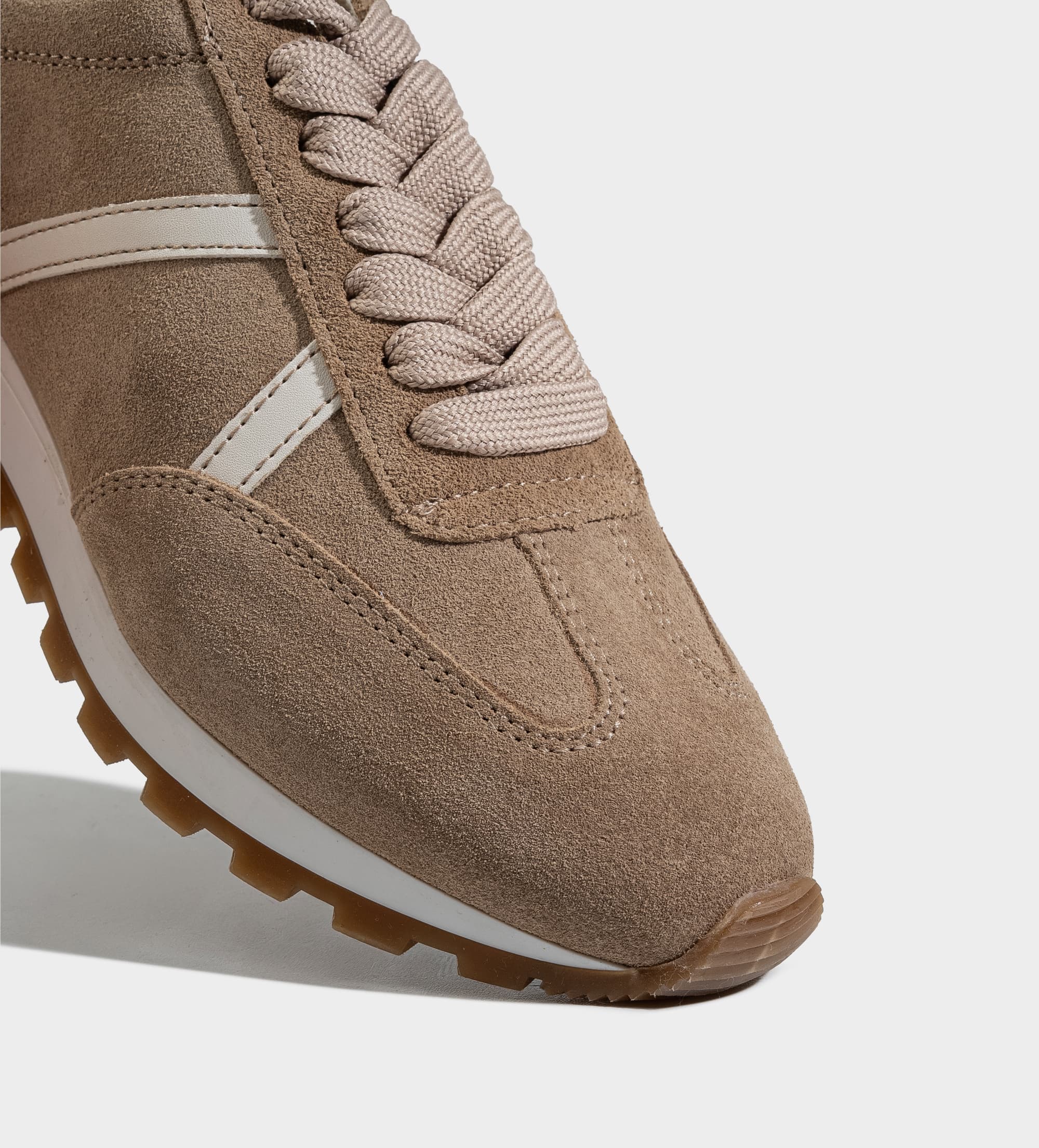 SNEAKER CASUAL GAMUZA PIEL BEIGE FRANJAS LATERALES
