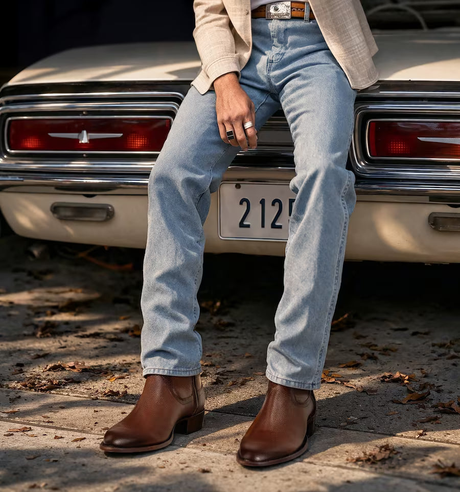 Estos botines western de piel en color café reinterpretan el origen clásico bajo una visión más actual. City Western no es una bota vaquera tradicional, es su evolución: una silueta más limpia, sobria y versátil que eleva el estilo sin esfuerzo.